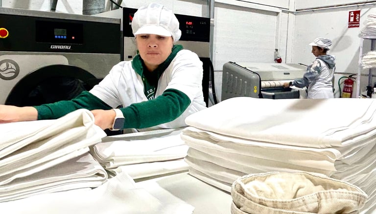 Cuidamos cada prenda con dedicación, ofreciendo un servicio especializado en pisos vacacionales, hostales y restaurantes, además de amenities y ropa blanca de alta calidad.